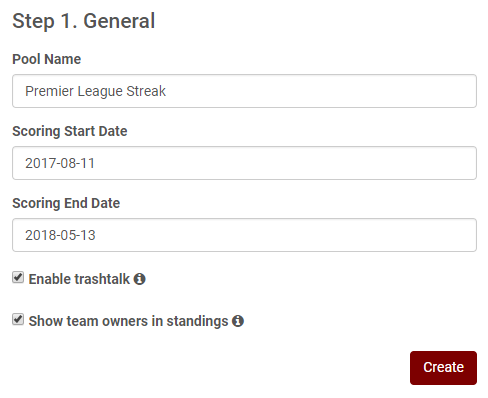 These steps show you how to setup your Soccer Streak pool once you are in the Create New Pool wizard: