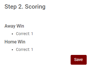 - Due to the simplicity of the Streak setup, the Scoring page is uncustomizable. Simply click Save to finish creating your Streak pool.